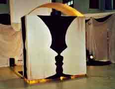 Ton & Bewegung Diese akustische Animation besteht aus vier unsichtbaren Strahlen. Diese lösen bei deren Unterbrechung (auch sehr kurze) Textfragmente oder Musik aus. Einsatzmöglichkeiten wären z.B. Eingangsbereich, Durchgang. Die Musik bzw. Töne laufen solange wie die Unterbrechung erfolgt. Die Tonaufnahmen können von uns speziell erstellt werden. Platzbedarf: 2 x 2 Meter, ca. 2,20 m hoch. Virtueller Schatten und die Toninstallation ergänzen sich optimal. Dadurch wird der "Agierende" ungezwungen animiert, sich spielerisch zu bewegen. |